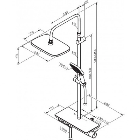 Высота душевой шт.анги