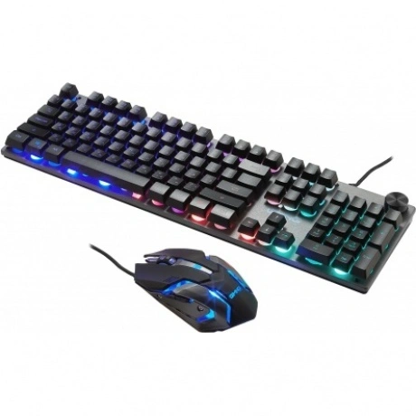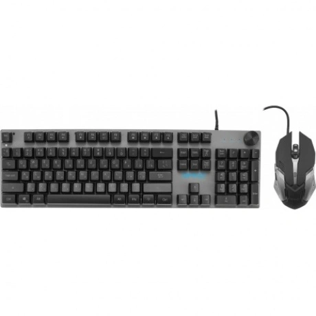 Клавиатура+мышь проводная Oklick GMNG 500GMK ? набор для ПК, который будет удобен как для работы, так и для игр. Клавиатура с раскладкой ISO имеет конструкцию «Скелетон». Она предусматривает размещение переключателей без дополнительных бортиков и рамки, за счет чего клавиши выступают над корпусом. Это меняет эргономику устройства. Клавиатура с металлической верхней панелью содержит прорезиненные ножки, что позволяет настроить ее по высоте и делает устройство более устойчивым. Цифровой блок и мультимедийные клавиши расширяют функционал клавиатуры. Мышь из набора Oklick GMNG 500GMK сконструирована для хвата правой рукой. Она содержит 6 кнопок, среди которых боковые кнопки, а также кнопка смены разрешения. Максимальное разрешение светодиодного датчика достигает 2400 dpi. Особенность клавиатуры и мыши во встроенной многоцветной подсветке. Устройства подключаются через USB, используя плетенный кабель длиной 1.5 м.