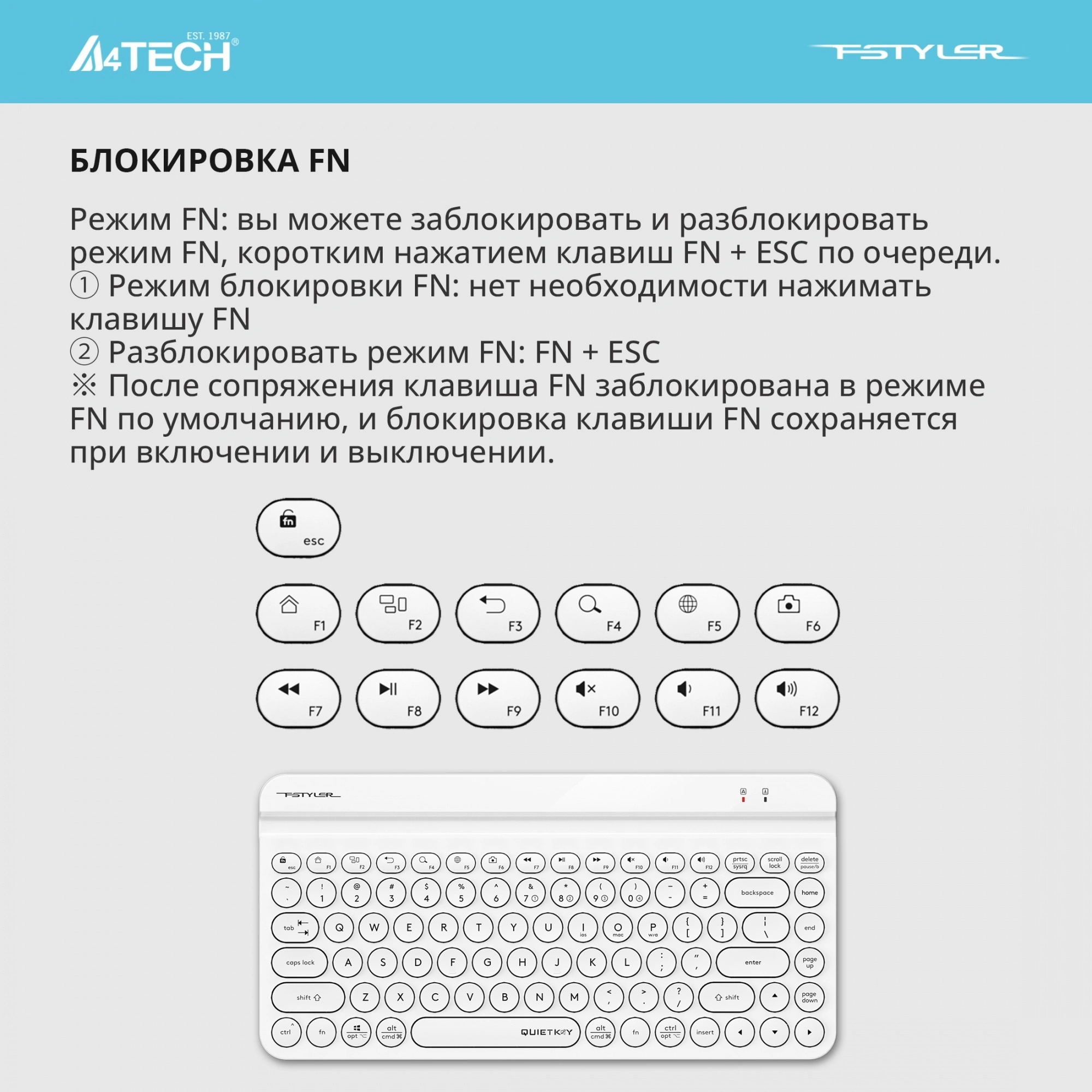 Клавиатура A4Tech Fstyler FBK30 белый - данный товар вы можете купить по цене 1820 руб. в интернет-магазине КотоФото. Характеристики, описание товара, фото и цена представлены на карточке товара. Заказать товар вы можете по телефону 8(812)426-98-99 в Санкт-Петербурге.
