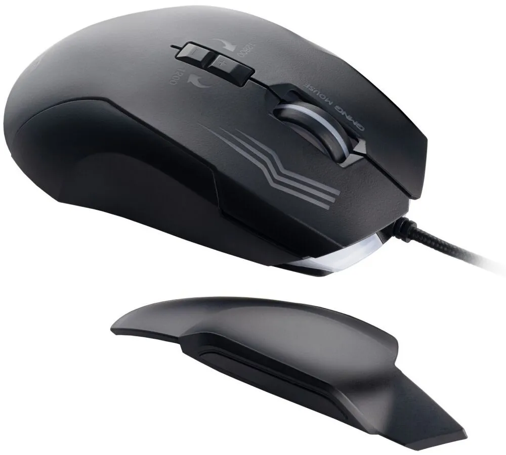 Игровая компьютерная мышь XM004 с разрешением до 12800 dpi, 7 кнопок, прорезиненная бокоая антискользящая вставка, сменная боковая панель, UV покрытие корпуса, RGB подсветка, тефлоновые ножки, кабель в оплекте с магнитным фильтром.