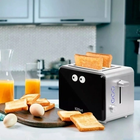 Тостер Kitfort КТ-2065 создан для любителей ароматного и хрустящего, поджаренного хлеба. Прибор позволяет быстро поджарить тосты для приготовления горячих бутербродов, сэндвичей, а также бейглы, хлебцы для закусок, салатов и других блюд. Тостер оснащён регулятором степени обжаривания и 2 режимами. Подогрев служит для разогрева уже готовых тостов, если они остыли. Разморозка позволяет приготовить тосты из замороженного хлеба. Стоп - прибор выключается, а тосты поднимаются наверх. После приготовления, устройство автоматически отключается, а тосты поднимаются вверх, чтобы их было удобнее извлекать, без риска обжечься. Вы можете приготовить сразу 1 или 2 тоста одновременно. Благодаря 6 степеням обжаривания вы можете приготовить горячие тосты на любой вкус и из любых видов хлеба. Особый вкус и цвет тостов получаются такими благодаря карамелизации сахара, содержащегося в муке, в процессе приготовления. Широкие слоты позволяют поджаривать не только ломтики хлеба, но и половинки круассанов, бейглов и другие хлебобулочные изделия. Загруженные тосты автоматически центрируются, чтобы их поджарка с двух сторон была равномерной независимо от толщины куска. В нижней части корпуса тостера расположен съёмный поддон для сбора крошек. Просто выдвиньте его и выбросите скопившиеся крошки, а остатки протрите салфеткой. Благодаря компактным размерам и лаконичному дизайну тостер Kitfort КТ-2065 найдёт своё место даже на самой маленькой кухне и станет её украшением! Наслаждайтесь хрустящими тостами каждый день! Тостер Kitfort КТ-2065 порадует вас не только приготовленными хрустящими тостами, но и своим креативным дизайном! В любой момент вы можете отклеить стикер без вреда для поверхности.