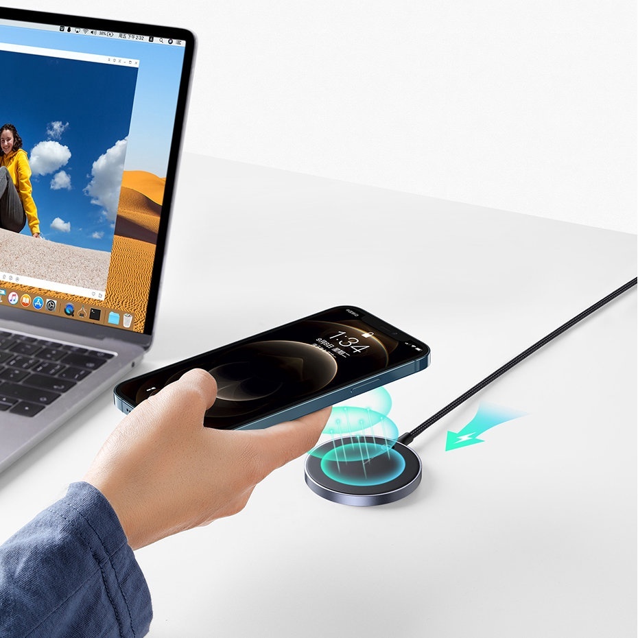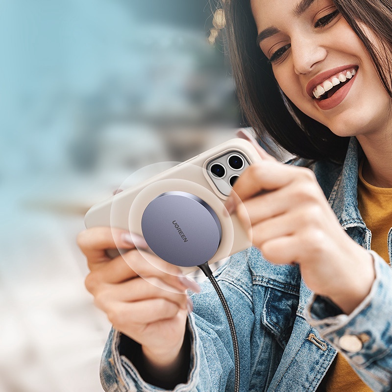 Магнитное беспроводное зарядное устройство UGREEN с идеально расположенными магнитами стыкуется с вашим iPhone 15/15 Pro/15 Pro Max/14/14 Pro/14 Pro Max и др. и обеспечивает более быструю беспроводную зарядку. Вы можете просто разместить свое устройство в свободном положении, тогда беспроводное зарядное устройство разгонит ваш iPhone до нужной скорости.