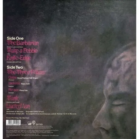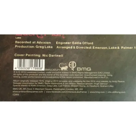 Переиздание на виниле дебютной пластинки группы 1970 года. Альбом быстро принес команде популярность, а сингл Lucky Man (так же включенный в издание), стал 100-процентным хитом. Трио музыкантов совместно написали только песню The Barbarian, остальные треки - либо новые переработки (например, музыки Белы Бартока и Леоша Яначека), либо творчество одного из участников. ремастрированное издание с высококачественных мастер-файлов. Конверт имеет небольшую помятость. Emerson, Lake & Palmer образовалась в 1969 и год спустя выпустила первый студийный альбом, который сразу же принес команде известность. Название слагается из фамилий участников: Кит Эмерсон, Грег Лейк, Карл Палмер. Группа считается одной из первых supergroup, потому как все участники успели прославиться в других коллективах - The Nice, King Crimson и Crazy World of Arthur Brown. За время своего существования группа записала 12 студийных альбомов.