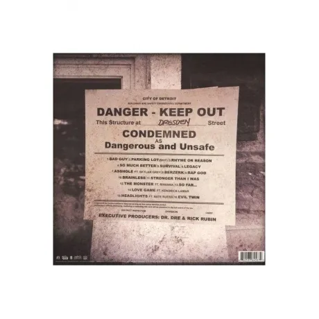 Bad Guy, Parking Lot (Skit), Rhyme Or Reason, So Much Better, Survival, Legacy, hole - Feat. "Skylar Grey", Berzerk, Rap God, Brainless, Stronger Than I Was, The Monster - Feat. Rihanna, So Far..., Love Game - Feat. Кендрик Ламар, Headlights - Feat. Нейт Райесс, Evil Twin