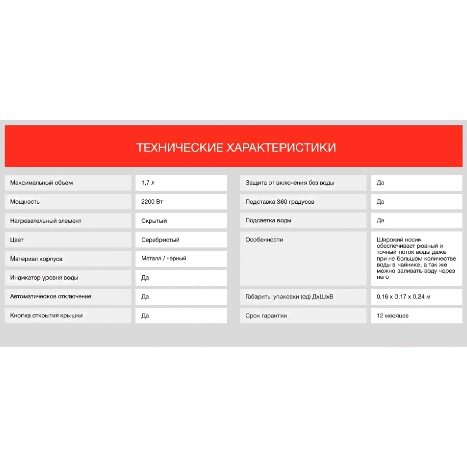 Отдельного внимания заслуживает широкий носик чайника, который выполнен по технологии «непроливайка» и обеспечивает четкое равномерное налитие, без разбрызгивания кипятка за пределы чашки.