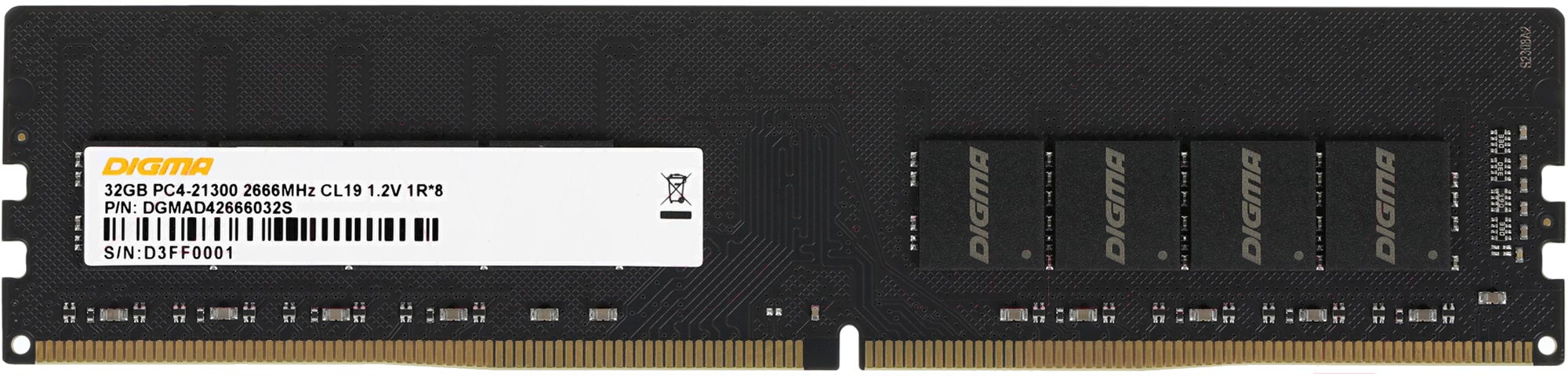 Описание товара Оперативная память DDR4 Digma 32Gb 2666MHz DIMM (DGMAD42666032S)