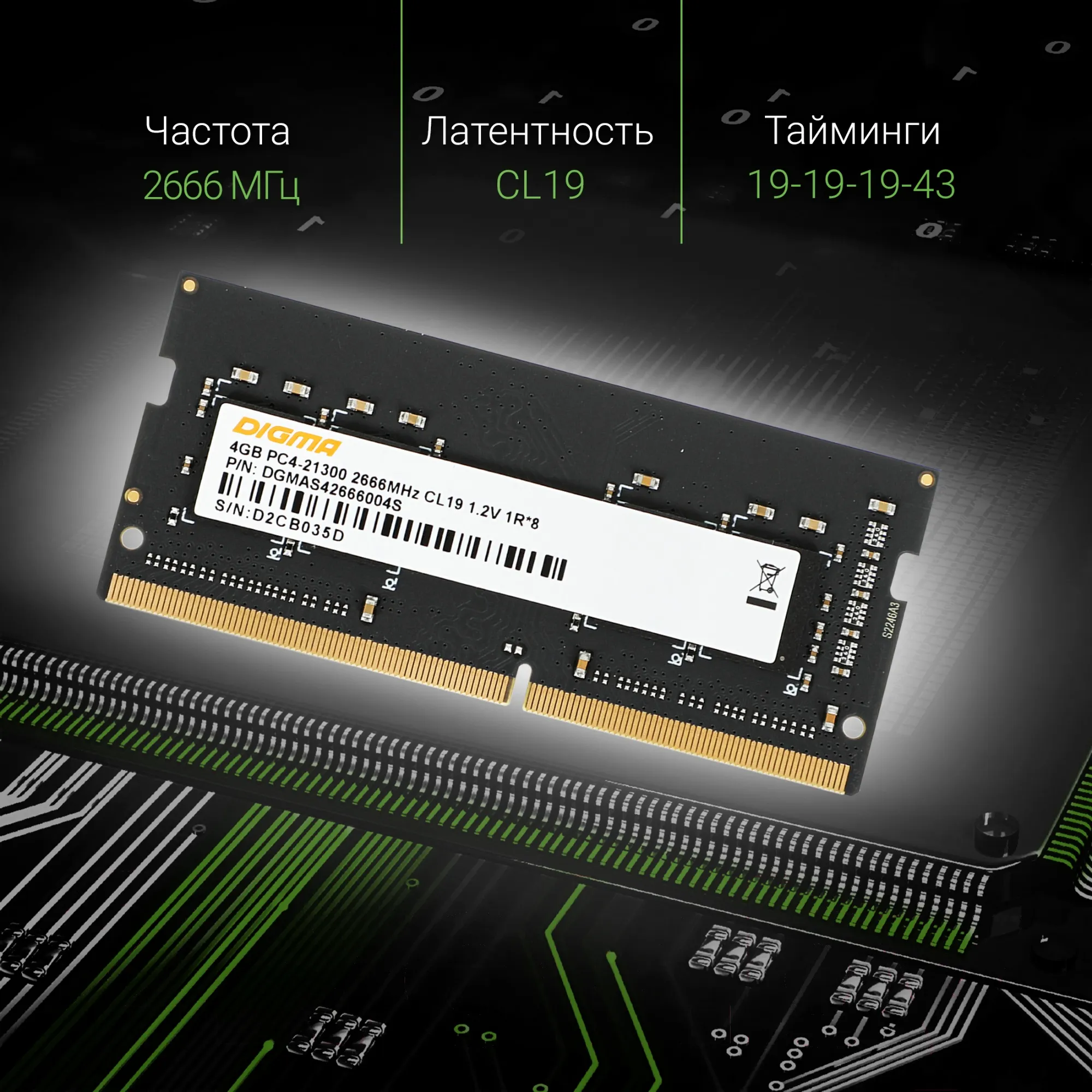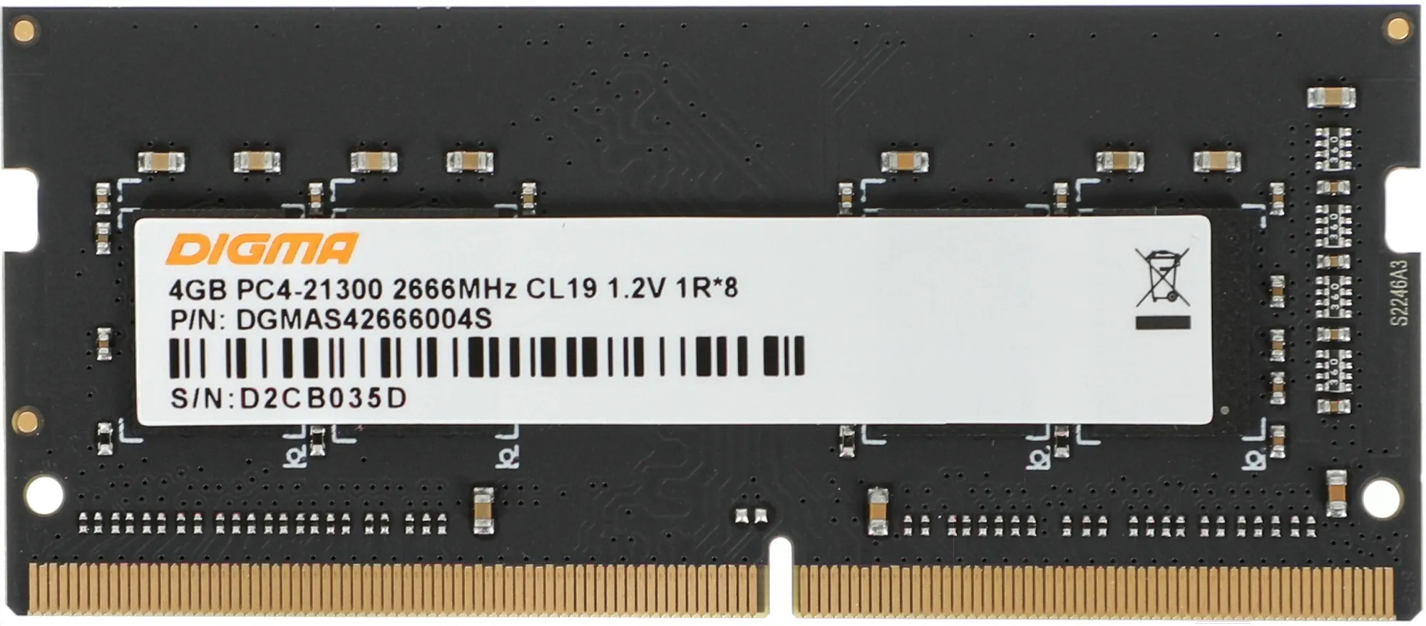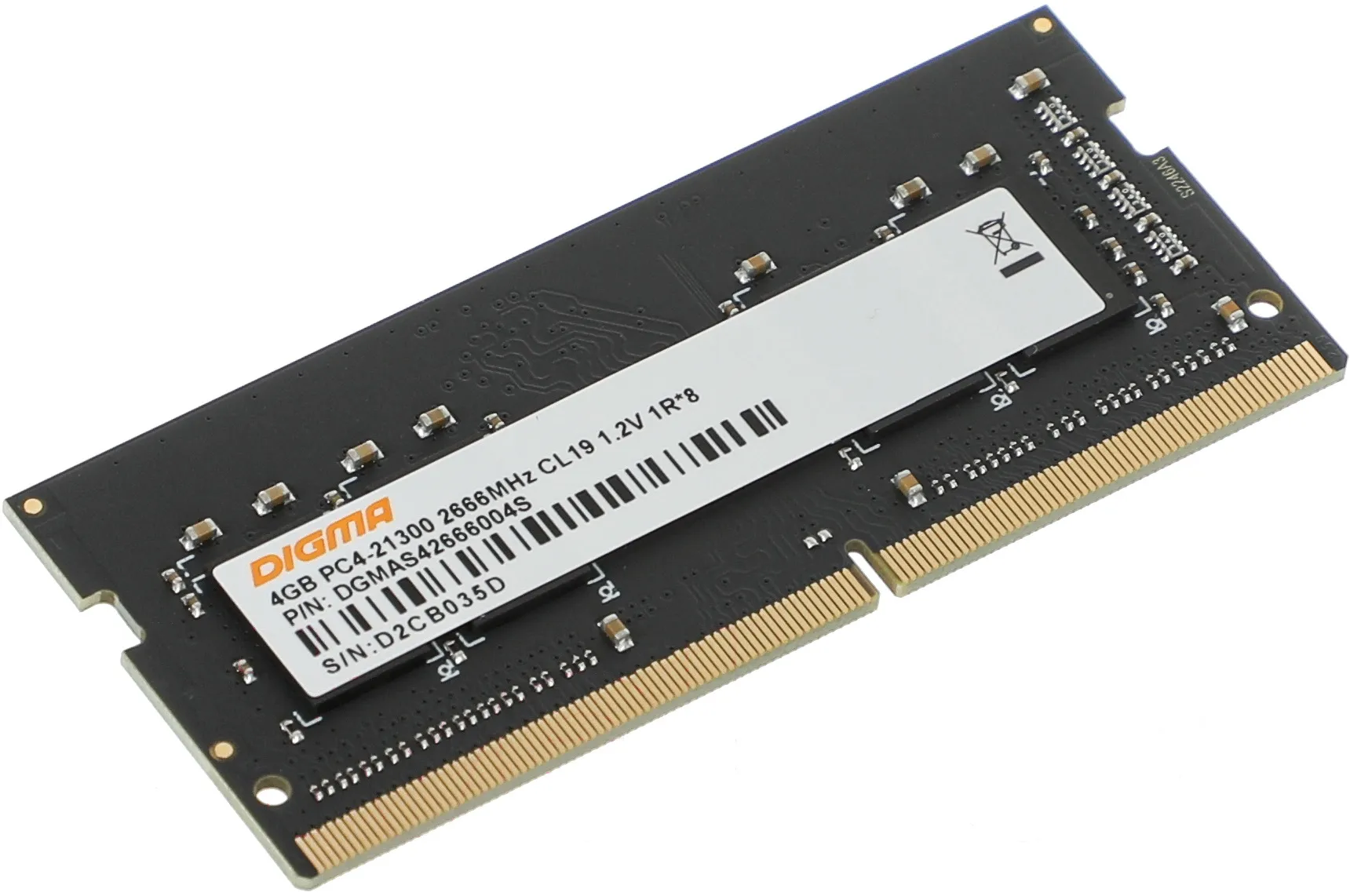 Описание товара Оперативная память DDR4 Digma 4Gb 2666MHz SO-DIMM (DGMAS42666004S)