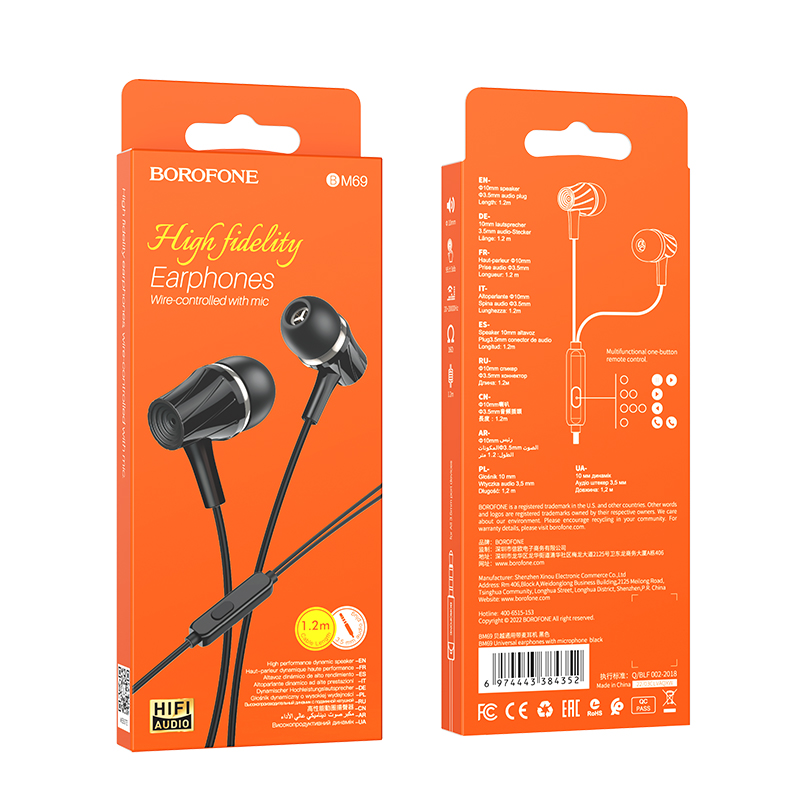Маленькая модель BOROFONE BM69, имеет корпус с удобными вкладышами для комфортной посадки в ушах, оснащена динамиками с прекрасной акустической стерео - системой для качественного звука и поддерживает опцию управления звонками. С помощью многофункциональной кнопки можно принимать вызовы или менять треки при прослушивания музыки. Гарнитура подходит и для детских, и для взрослых ушей. Портативные мобильные наушники удобны во время активных занятий спортом. Игровые наушники имеют разъем провода Mini jack 3.5 mm. Плотные амбушюры подавляют внешний шум и дают идеальное звучание. Вакуумные затычки хорошо подойдут для просмотров фильмов на пк. Они совместимы со всей современной техникой и электроникой - плеерами, телефонами, компьютерами.