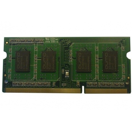 ОЗУ QUMO [QUM4S-16G2666P19] предполагает работу при входном напряжении 1.2 В. Модуль может быть установлен на замену планки с меньшими характеристиками или размещен в свободном слоте для памяти формата SODIMM. Он изготавливается на основе платы из текстолита черного цвета и снабжается 16 чипами памяти. Чипы монтируются на обеих сторонах печатной платы.