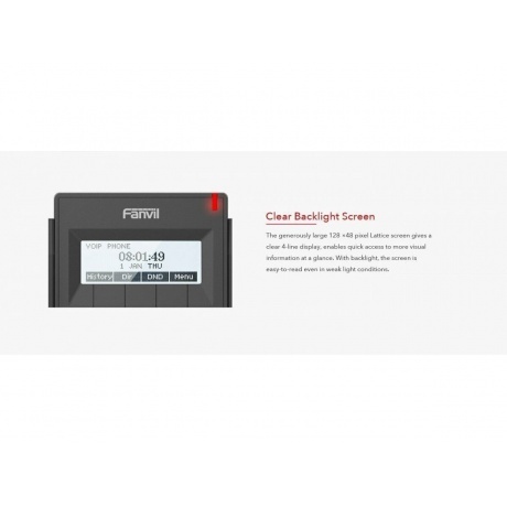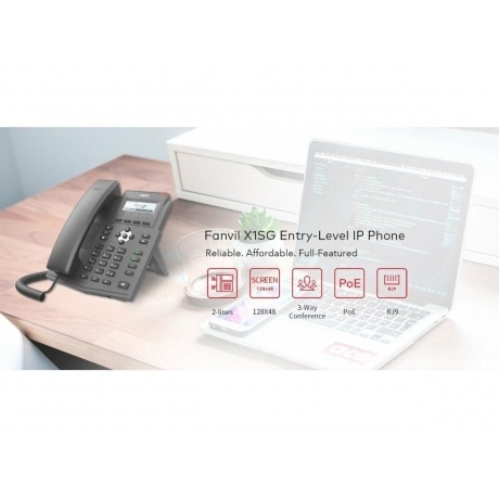VoIP телефон Fanvil X1SG с 2 сетевыми портами 10/100 и питанием PoE, поддерживающий 2 линии VoIP7 и оснащенный HD-аудио. Fanvil X1SG имеет дисплей с подсветкой и разъем для подключения телефонной гарнитуры. Fanvil X1SG является терминалом уровня IP (стандарт SIP), который может использоваться на VoIP-платформах, таких как Yeastar, Grandstream, 3CX и многих других, а также непосредственно на IP-линиях телефонных операторов или на виртуальном коммутаторе. Рекомендуется для установки на рабочие станции, обслуживаемые соединением Ethernet 10/100. Телефон Fanvil X1SG идеально подходит для рабочих станций с небольшим трафиком, а также для гостиничных номеров. Он также подходит для колл-центра (с возможностью управления максимум 2 одновременными вызовами, поскольку он поддерживает 2 учетные записи SIP).