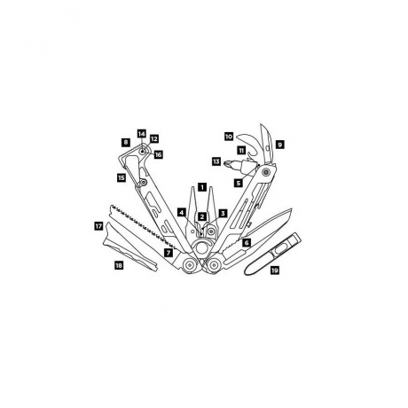 Мультитул Leatherman Signal – универсальный инструмент для аутдора, что означает для ценителей пикников, путешествий и пеших походов. Производители же позиционировали продукт как надежный предмет для возможного выживания в экстремальных условиях. Главная особенность – наличие съемного огнива и свистка. На этом функциональность мультитула не заканчивается. Реально у человека в руке 19 инструментов: молоток, сменные кусачки особой прочности из стали 154CM, универсальный нож (одна половина прямая, а вот вторая получила волнообразную заточку). Острый стальной клинок 420HC с выемкой для удобного открывания одним пальцем. Главный инструмент – универсальный пассатижи, они же кусачки и острогубцы, есть держатели для бит, алмазный надфиль, набор отверток и пила. Инструменты 19шт.