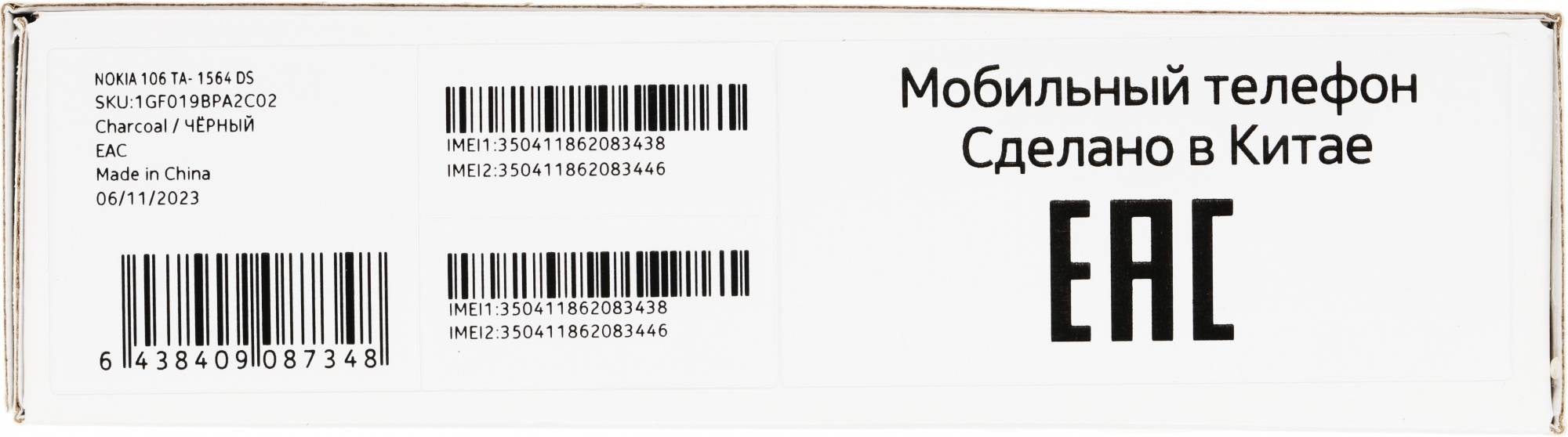 Описание товара Мобильный телефон Nokia 106 TA-1564 DS CHARCOAL (1GF019BPA2C02)