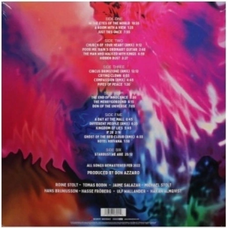Stardust We Are - это третий студийный альбом прогрессив-рок-группы The Flower Kings, который был выпущен в 1997 году. Это первый студийный альбом группы на двух компакт-дисках, включающий эпическую композицию и заглавный трек Stardust We Are, который с тех пор стал одной из фирменных песен команды. Издание на 3LP+2CD. The Flower Kings — шведская прогрессив-рок-группа, сформированная в 1993 году гитаристом Ройне Столтом для работы над его сольным альбомом «The Flower King». В итоге за девятнадцать лет ребята выпустили около 30 часов музыки! Подавляющее большинство произведений группы написал Ройне Столт. Практически все оставшиеся композиции написал Томас Бодин. В целом стиль The Flower Kings можно охарактеризовать как симфонический арт-рок, во многих случаях похожий на ранний Genesis и Yes. Тексты группы практически везде одинаково позитивные и утверждают такие ценности, как любовь, мир и духовность. В 1999 году The Flower Kings в альбоме «Flower Power» выпустили одну из наиболее длинных композиций прогрессивного рока — почти 60-минутное произведение «Garden of Dreams», состоящее из 18 частей. Группа имеет заметную тягу к эпическим произведениям. Как правило почти каждый альбом содержит хотя бы один эпик (исключениями можно считать «Retropolis» и «Back in the World of Adventures»).