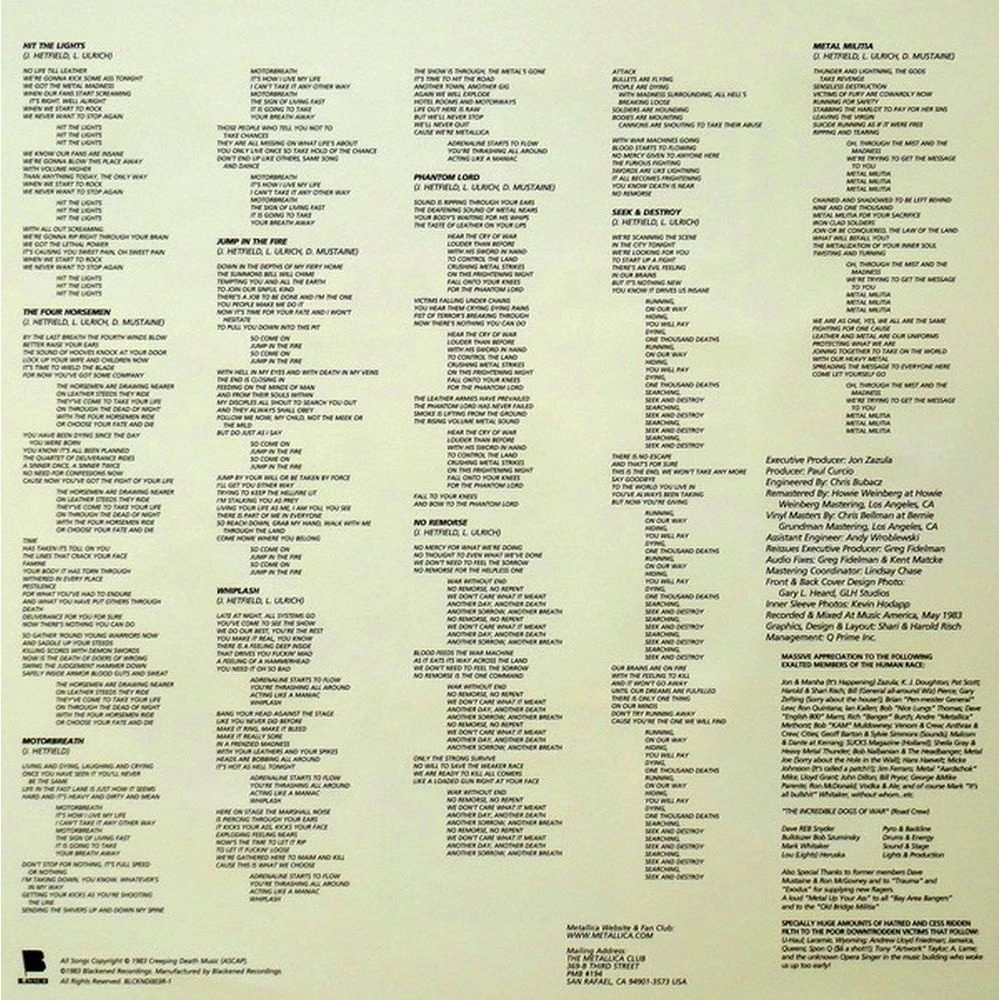 Лицензионное издание, выпущенное на виниле. В альбом вошли следующие композиции: Hit The Lights, The Four Horsemen, Motorbreath, Jump In The Fire, (Anesthesia)-Pulling Teeth, Whiplash, Phantom Lord, No Remorse, Seek & Destroy, Metal Militia