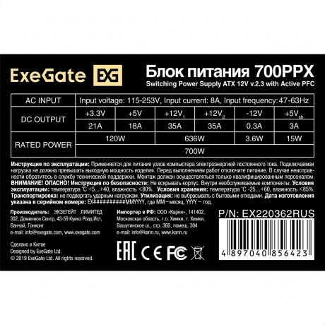 Блок питания ExeGate 700PPX black (EX220362RUS-S) - фото, характеристики, описание и цена представлены на карточке товара. Для того, чтобы сразу узнать о поступлении этого товара в наш интернет-магазин, вам надо подписаться на уведомление по email, оставив адрес своей электронной почты в форме выше на данной странице.