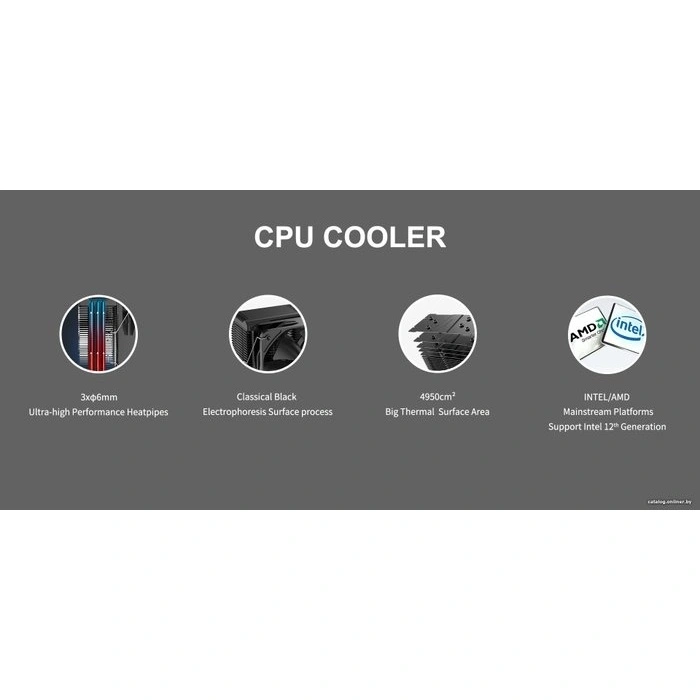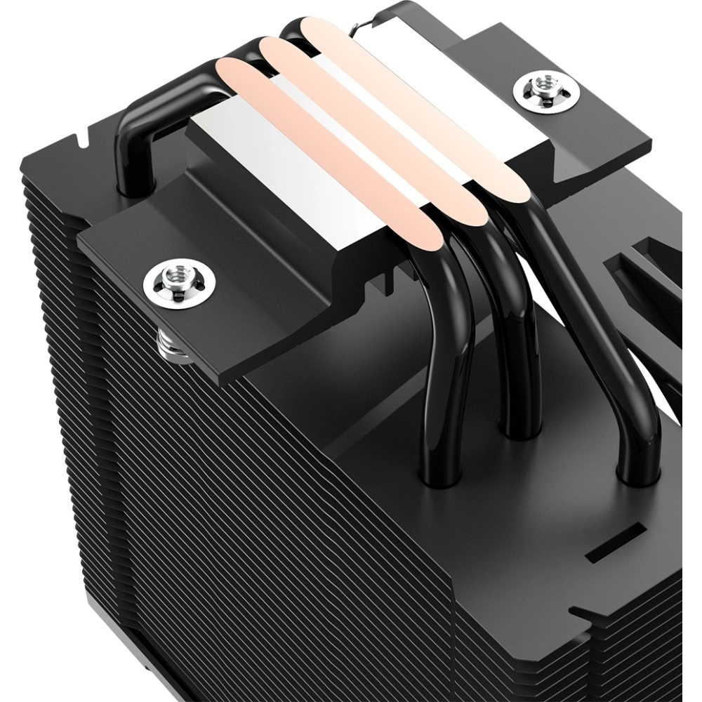 Кулер для процессора PCCOOLER PALADIN EX300S [CLPCC_Paladin_EX300_S] совместим с разными процессорными сокетами, такими как AM4, LGA 1150, LGA 1151, LGA 1151-v2 и другие разъемы подключения. Воздушная система охлаждения для ЦПУ отводит и рассеивает до 125 Вт тепловой энергии, выделенной процессором при работе, способствуя оптимизации его рабочей температуры. Кулер с 3 тепловыми трубками снабжается медно-алюминиевым основанием, непосредственно контактирующим с площадкой процессора, и алюминиевым радиатором. В башенном процессорном кулере PCCOOLER PALADIN EX300S [CLPCC_Paladin_EX300_S] предусмотрен один вентилятор с автоматическим управлением оборотами. Скорость вращения вентилятора задается через ШИМ и может составлять 400-1800 об/мин в зависимости от нагрузки на процессор. Шумность кулера не превышает 28.6 дБ.