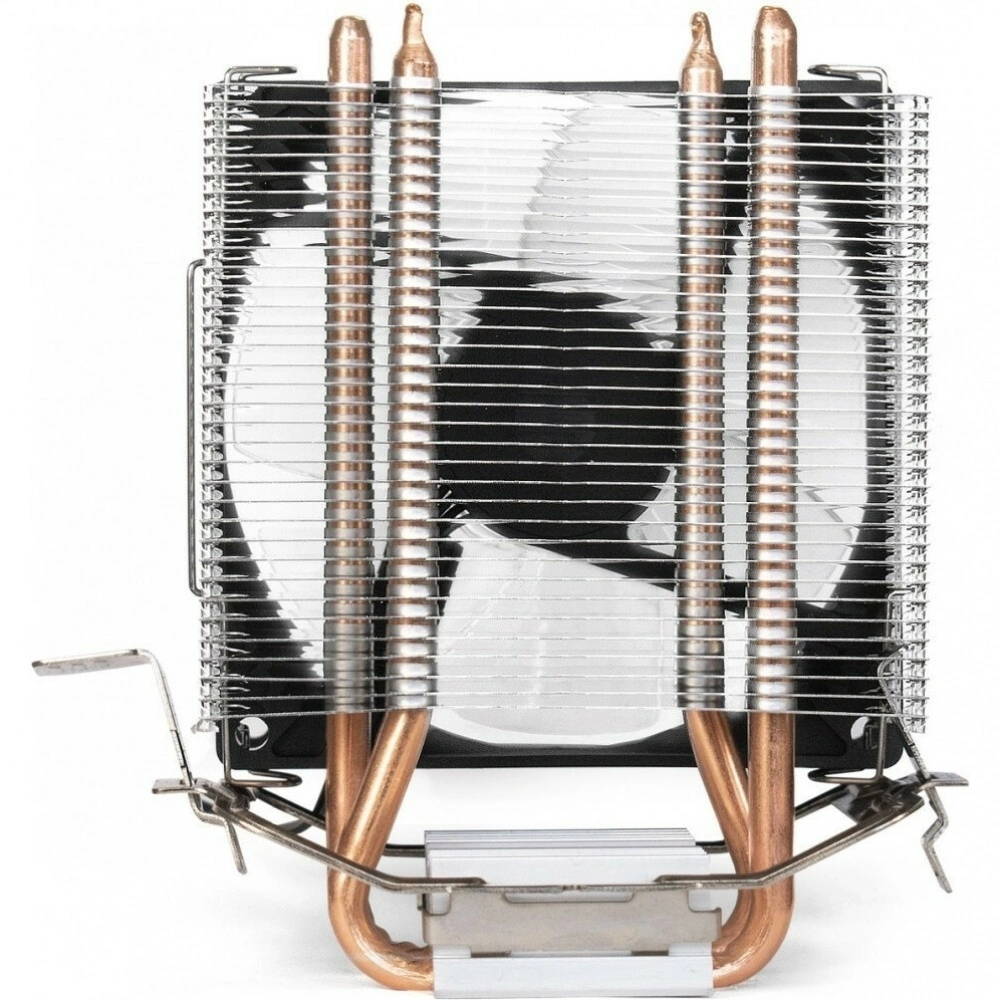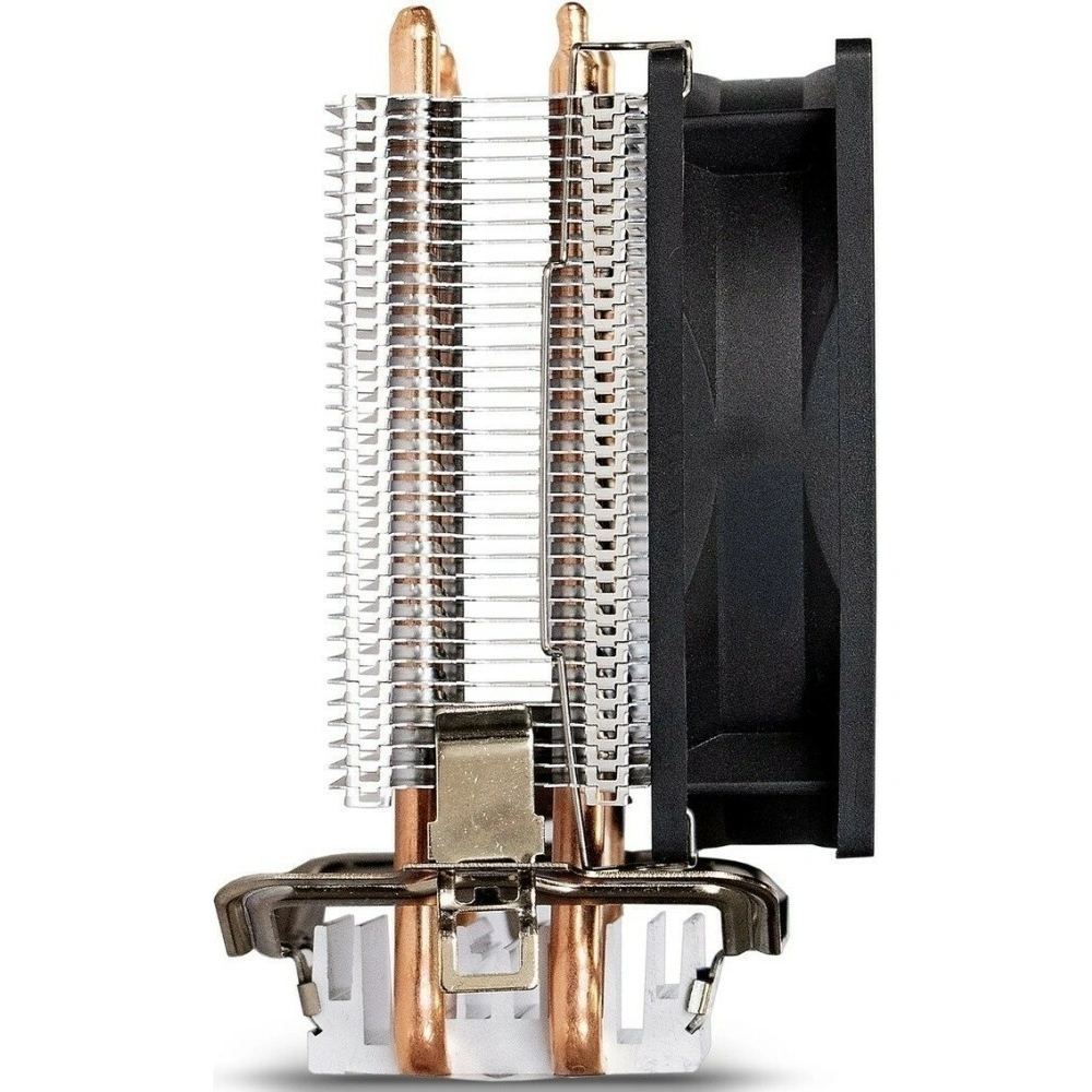 Кулер для процессора ExeGate Wizard EXX200-PWM.BLUE представляет собой модуль активного охлаждения башенного типа, отличающийся высокой производительностью и низким уровнем шума. Это обусловлено использованием алюминиевого радиатора с 2 тепловыми трубками и вентилятора диаметром 90 мм при толщине 25 мм с большой площадью поверхности лопастей. Данная модель также отличается автоматически регулируемой скоростью вращения лопастей, что при скорости от 800 до 2400 об/мин позволяет создавать направленный и эффективный воздушный поток максимальной силой до 35 CFM, способный рассеивать мощность до 80 Вт. Уровень шума при этом не превышает значение в 24 дБ.