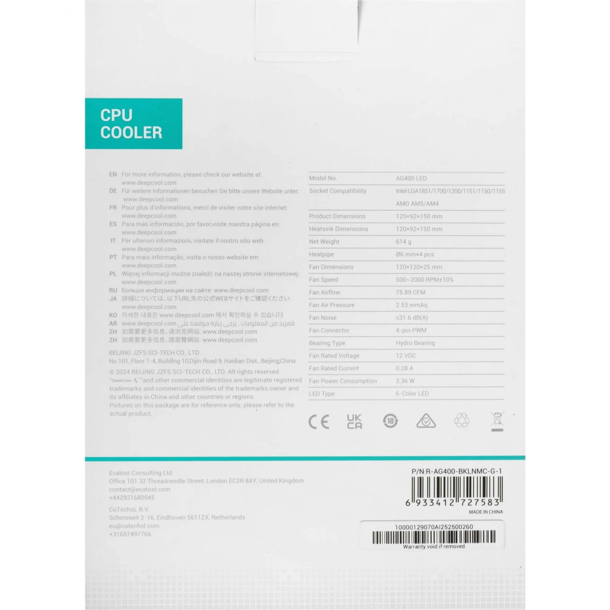 Кулер для процессора Deepcool AG400 LED 1700 NATIVE в Санкт-Петербурге