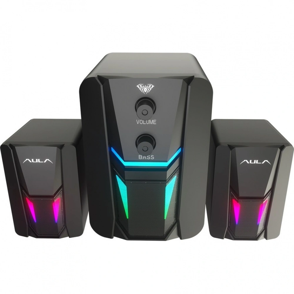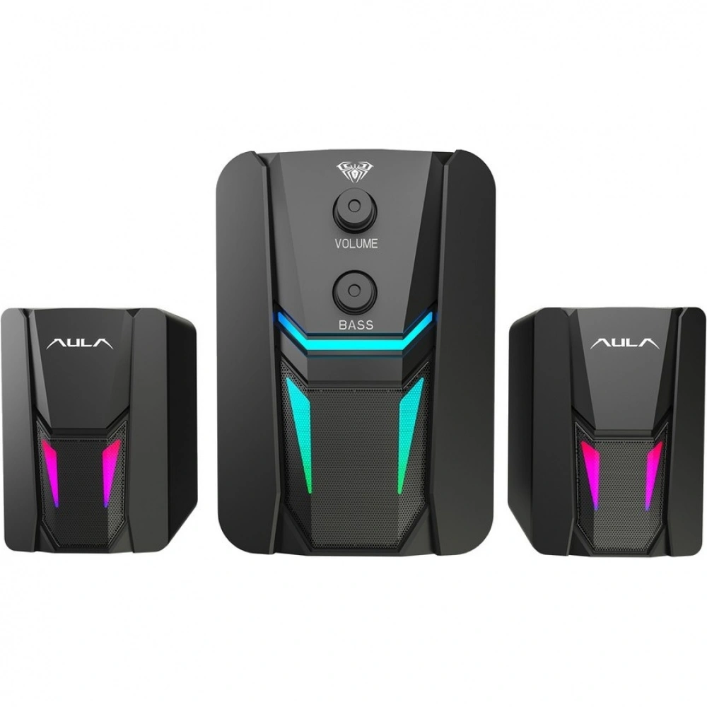 Портативная акустическая система Aula черного цвета — это идеальное решение для любителей качественного звука в любом месте. Корпус из прочного пластика обеспечивает надежность и легкость, что делает колонку удобной для переноса. Основной динамик и сабвуфер, каждый диаметром 76 мм, обеспечивают мощный и насыщенный звук, а система 2.1 гарантирует великолепное стерео-звучание.