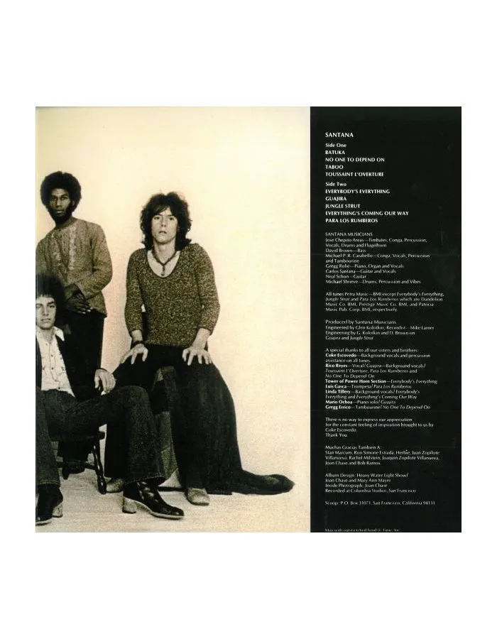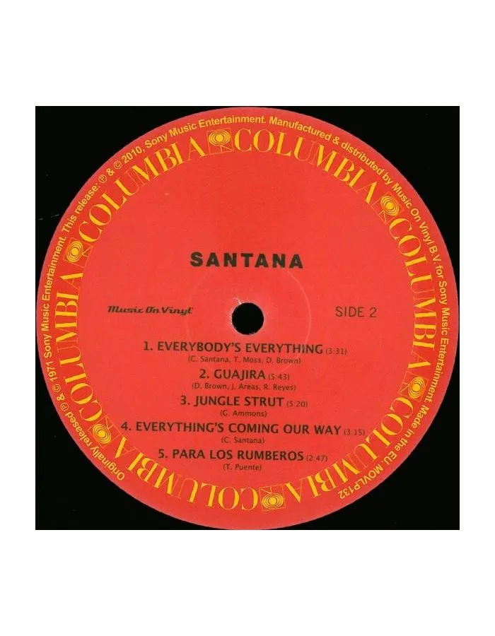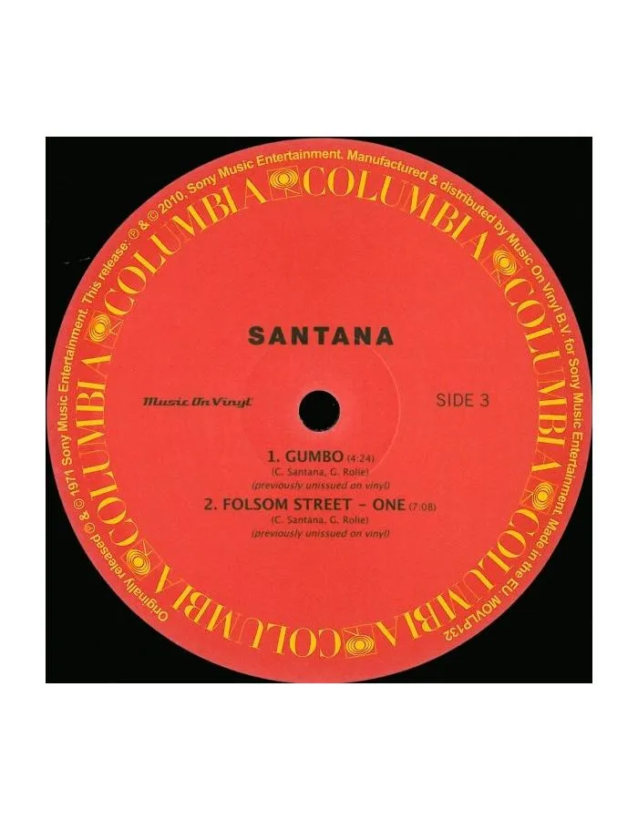 Santana 3 - третий альбом группы Карлоса Сантаны, выпущенный в 1971 году. Последняя запись Эры Вудстока. После этой пластинки Сантана долгое время не попадал на 1-ое место в чартах (вплоть до 1999 года), что даже зафиксировано в Книге рекордов Гиннеса. Ремастированное переиздание представлено на двойном 180-ти граммовом черном виниле и содержит 4 бонус-трека - 3 ранее не издававшихся трека Gumbo, Folsom Street, Banbeye и сингл-версия песни No One To Depend On. Конверт и винил в состоянии близком к идеальному. Карлос Сантана - американский гитарист, родившийся в 1947 году в Мексике. Много раз был удостоен премии Грэмми, особенно в период своего звездного часа 1960-70 годов. Песня Black Magic Woman того времени стала бессмертным хитом. Возвращение на вершины чартов произошло в 1999 году с выходов в свет альбома Supernatural. Пластинка получила Грэмми в номинации лучший альбом года и содержала хиты Maria Maria и Smooth. Всего было продано 30 миллионов экземпляров его пластинок, 14 альбомов стали золотыми, 9 - платиновыми.
