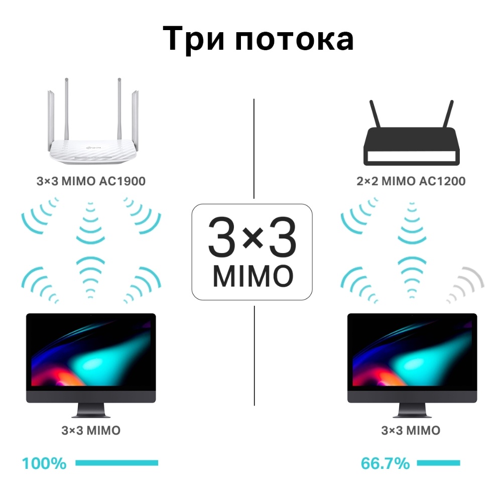Два диапазона Wi-Fi — до 600 Мбит/с на 2,4 ГГц, до 1300 Мбит/с на 5 ГГц.
