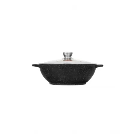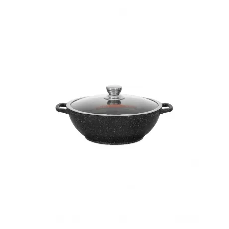 Казан с антипригарным покрытием Гранит имеет Утолщенное дно 5-6 мм и при равномерном распределении тепла по всей поверхности посуды обеспечивают необходимый температурный режим, который позволяет приготовить вкусную и здоровую пищу, сохраняя при этом все полезные витамины и свойства продуктов. В комплекте стеклянная крышка с ручкой. Удобная бакелитовая ручка не нагревается. Посуда легко и быстро моется благодаря гладкой не пористой поверхности и при бережном отношении прослужит долго.