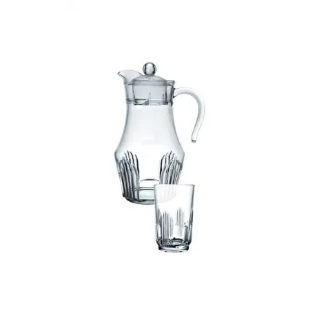 Питьевой набор ОРИЕНТ изготовлен из прозрачного ударопрочного стекла с рельефной текстурой. Закаленное стекло устойчиво к повреждениям, с течением времени на нем не появляются царапины, оно не теряет прозрачности. Все предметы в наборе можно мыть в посудомоечной машине, что облегчает ежедневный уход. Увеличенный объем кувшина рассчитан на 6 стаканов, это удобно для подачи напитков на большую компанию. Питьевой набор украсит праздничный и повседневный стол, избавит его от пакетированных напитков или пластиковых бутылок.