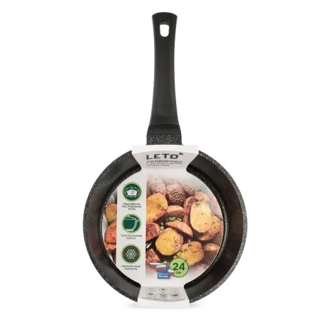Сковорода изготовлена сплава алюминия с антипригарным покрытием. Размер 24 см. Пригодна для любых типов плит, также для индукционных. Пустую посуду не подвергать воздействию высоких температур. Мыть жидким моющим средством , без применения абразивных веществ и металлических губок. Пригодна для мытья в посудомоечной машине.