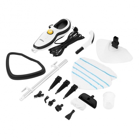 для отпаривания со скребком, скребок, струйная насадка х 3 шт, угловая насадка, большая круглая нейлоновая щетка, малая круглая нейлоновая щетка, плоская нейлоновая щетка, щетка для пола