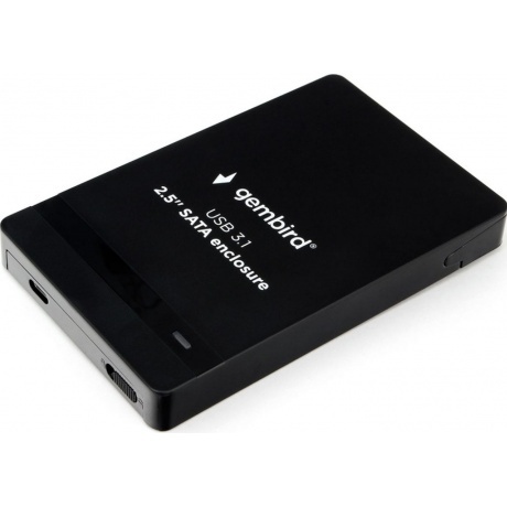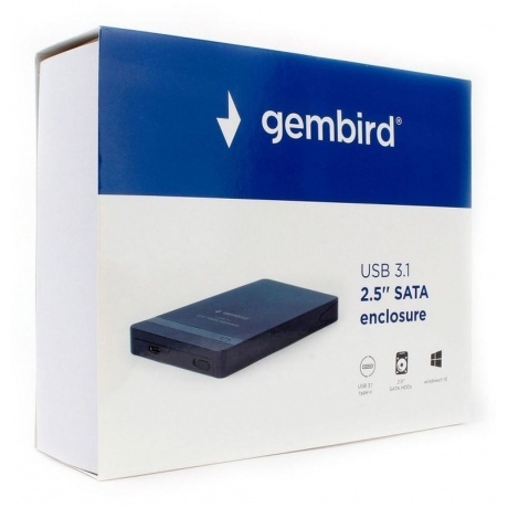 Черный внешний бокс Gembird EE2-U31S-2 подходит для размещения накопителей размером до 2.5 дюйма в диагонали. Объем устройства памяти, которое можно установить внутрь, может достигать 10 ТБ. Для подключения к ПК или ноутбуку в его корпусе есть интерфейс USB 3.2 Gen 1 Type-A, а для накопителя – SATA.