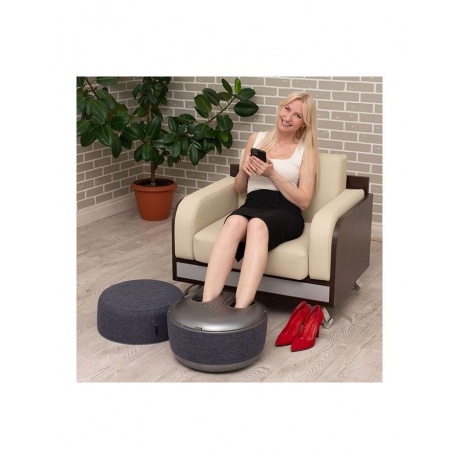 Удобный, стильный и многофункциональный беспроводной массажер – прекрасное решение для отекающих и уставших ног. Прибор сочетает в себе несколько функций: роликовая стимуляция, вибрационное воздействие, компрессионный массаж и глубокий инфракрасный прогрев. Дополнительный режим вибрационного массажа, который встроен в верхнюю часть массажера, позволит массажировать ягодицы.
