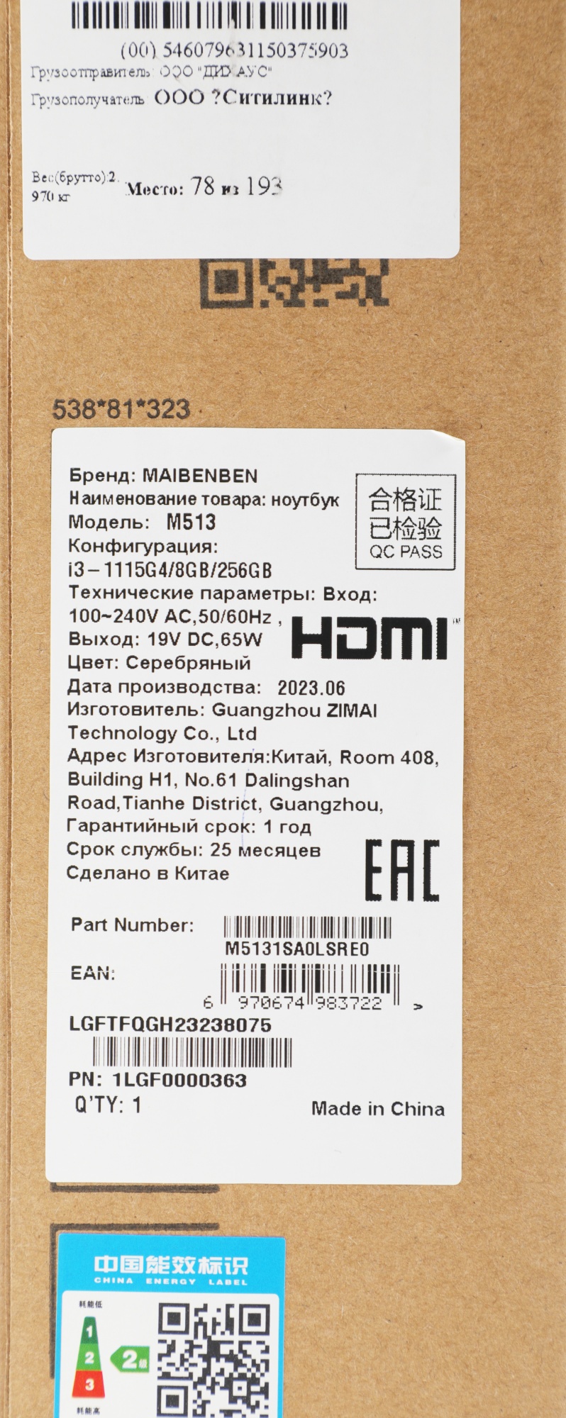 Описание товара Ноутбук Maibenben M513 15,6" (M5131SA0LSRE0)