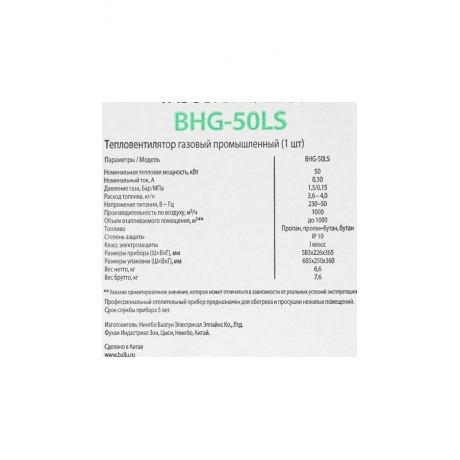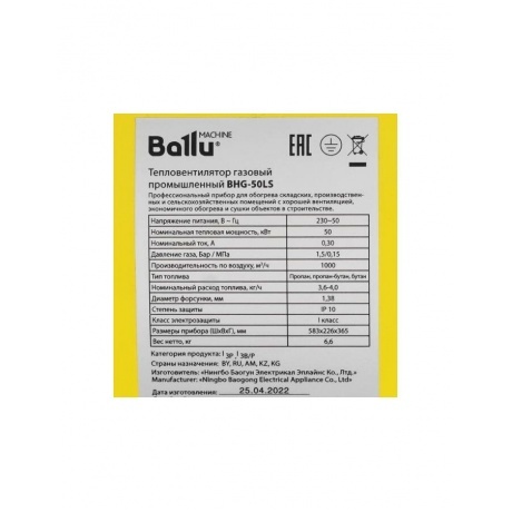 Описание товара Пушка тепловая газовая Ballu BHG-50LS