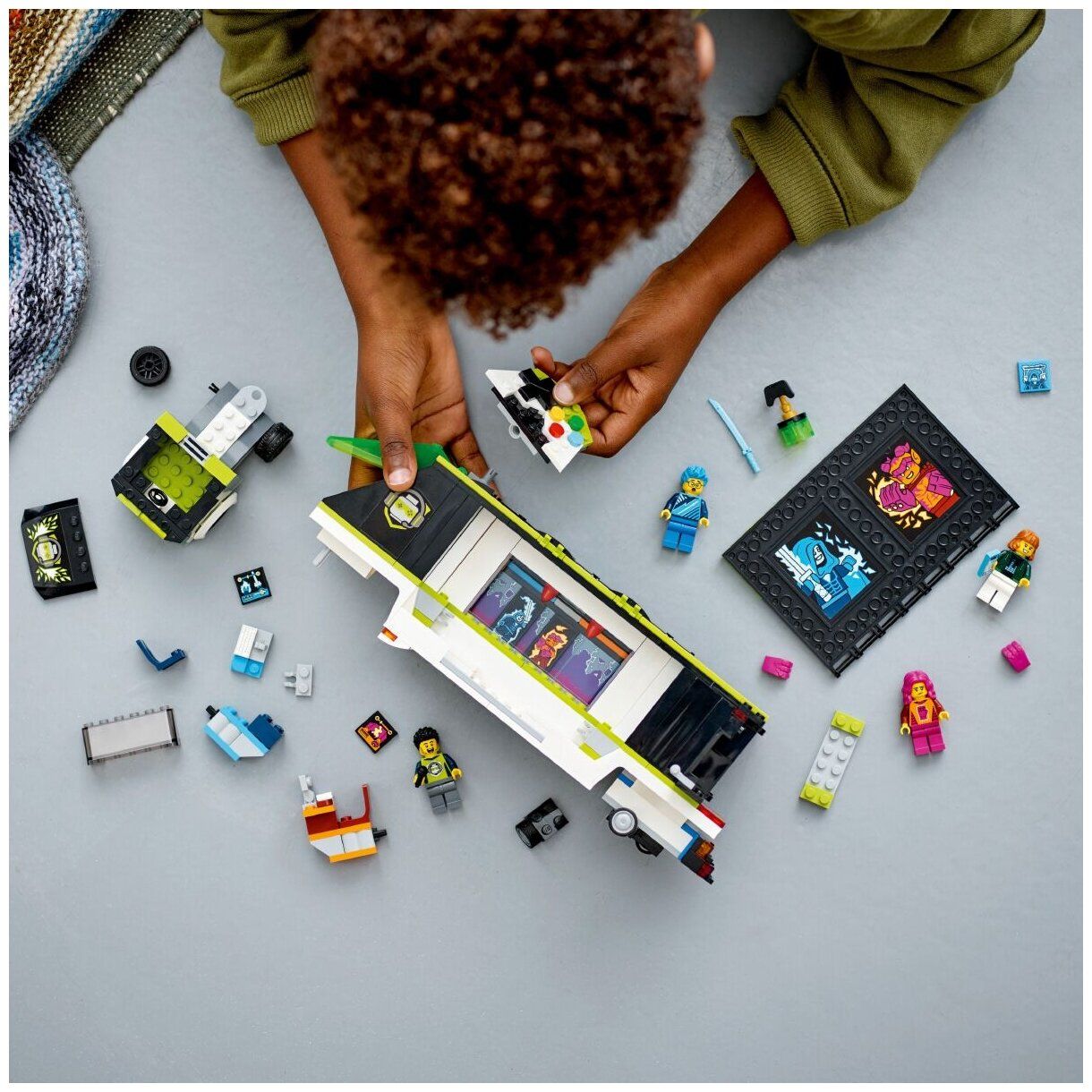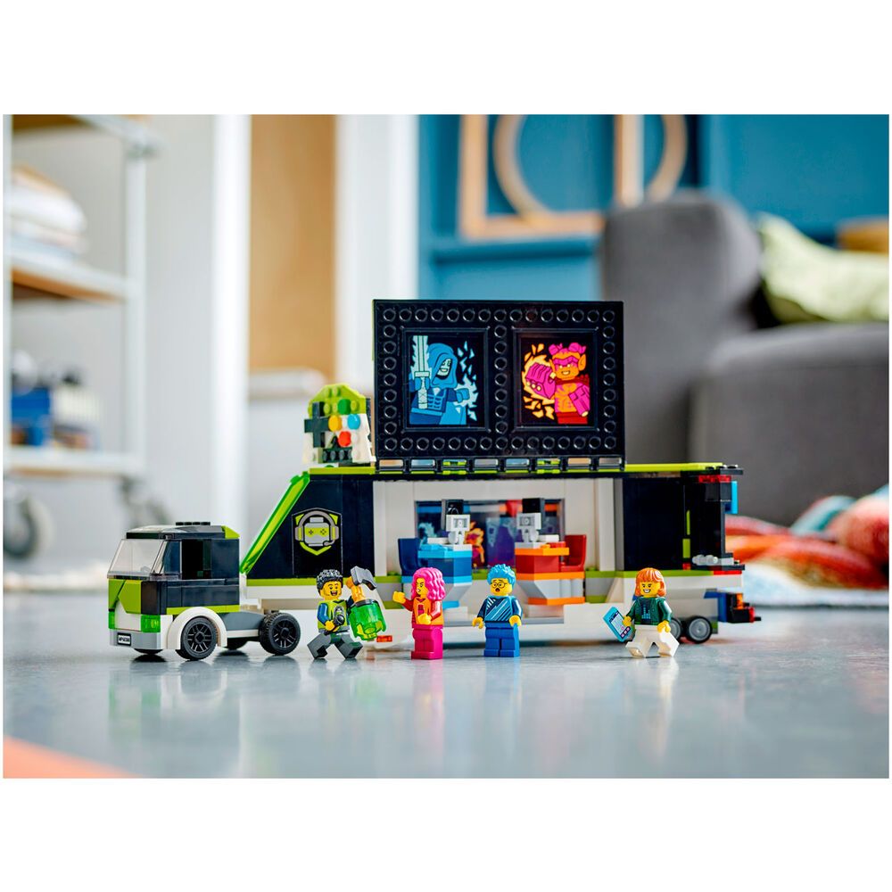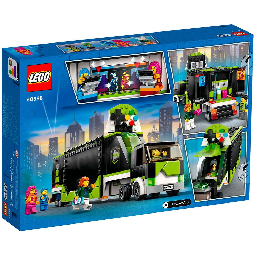 Конструктор Lego City Игровой турнирный грузовик 60388 развивает творческое мышление, усидчивость и мелкую моторику. Выполнен из безопасных для здоровья ребенка материалов. Набор LEGO City «Геймерский грузовик для турниров» (60388) оснащен функциями для творческой игры. Откройте трейлер, чтобы увидеть сцену с двумя игрушечными компьютерными игровыми станциями и экраном стадиона с забавной «анимацией», а также кубок победителя и крутые товары для фанатов киберспорта LEGO City. Просто возьмите минифигурки ведущего и игроков, и турнир начнется!. Набор для игрового турнира — грузовик LEGO City Gaming Tournament Truck (60388) оснащен оборудованием для проведения воображаемых игровых соревнований. Что в коробкеx — Все, что нужно детям для создания игрового турнирного грузовика со сценой, 2-мя игрушечными компьютерными игровыми станциями и экраном стадиона, а также приз победителя, товары и 3 минифигурки. Забавные функции расширяют игровой процесс — дети могут анимировать игровое действие на экране игрушечного стадиона и настраивать индикатор выполнения заданий для соревнующихся минифигурок, чтобы усилить волнение. подарок на любой случай — веселый подарок на день рождения, праздник или в любой другой день для детей в возрасте от 7 лет и старше. Размеры — LEGO City Gaming Tournament Truck имеет размеры более 13 см в высоту, 33 см в длину и 6 см в ширину. Аксессуары для минифигурок — аксессуары для игрушек LEGO в этом наборе включают приз победителя, микрофон, мобильный телефон и игровые предметы, в том числе большие кулаки и меч. Содержит печатное руководство по сборке — дети могут уверенно и с удовольствием строить благодаря интуитивно понятным инструкциям, которые входят в набор.