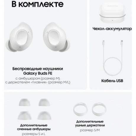 Наушники Samsung Galaxy Buds FE R400 White (SM-R400NZWAC) - купить по цене 4136 руб. в интернет-магазине КотоФото. На карточке товара Вы можете посмотреть подробное описание, характеристики и фото. Заказать товар можно на сайте, добавив в корзину, или позвонить по телефону 8(812)426-98-99 в Санкт-Петербурге. Доступен самовывоз и доставка.