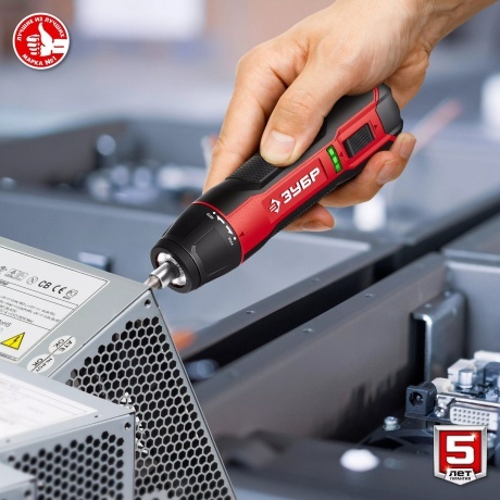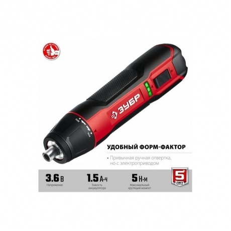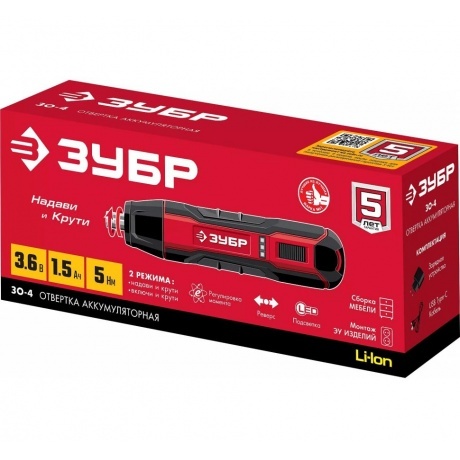 Аккумуляторная отвертка ЗУБР 3.6 В, в коробке ЗО-4 предназначена для заворачивания/отворачивания винтов, саморезов и шурупов при использовании соответствующих насадок. Предусмотрено два способа включения естественным нажатием и выключателем. Начальный момент в 0.3 Нм позволяет без повреждения заворачивать самые тонкие шурупы даже в мягкие материалы. Противоскользящее покрытие корпуса обеспечивает надежное удержание. Работа осуществляется от литий-ионного аккумулятора без эффекта памяти и саморазряда, с увеличенной для отвертки емкостью.
