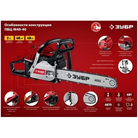 Описание товара Бензопила ЗУБР 40 см3, 40 см, (ПБЦ-М40-40)