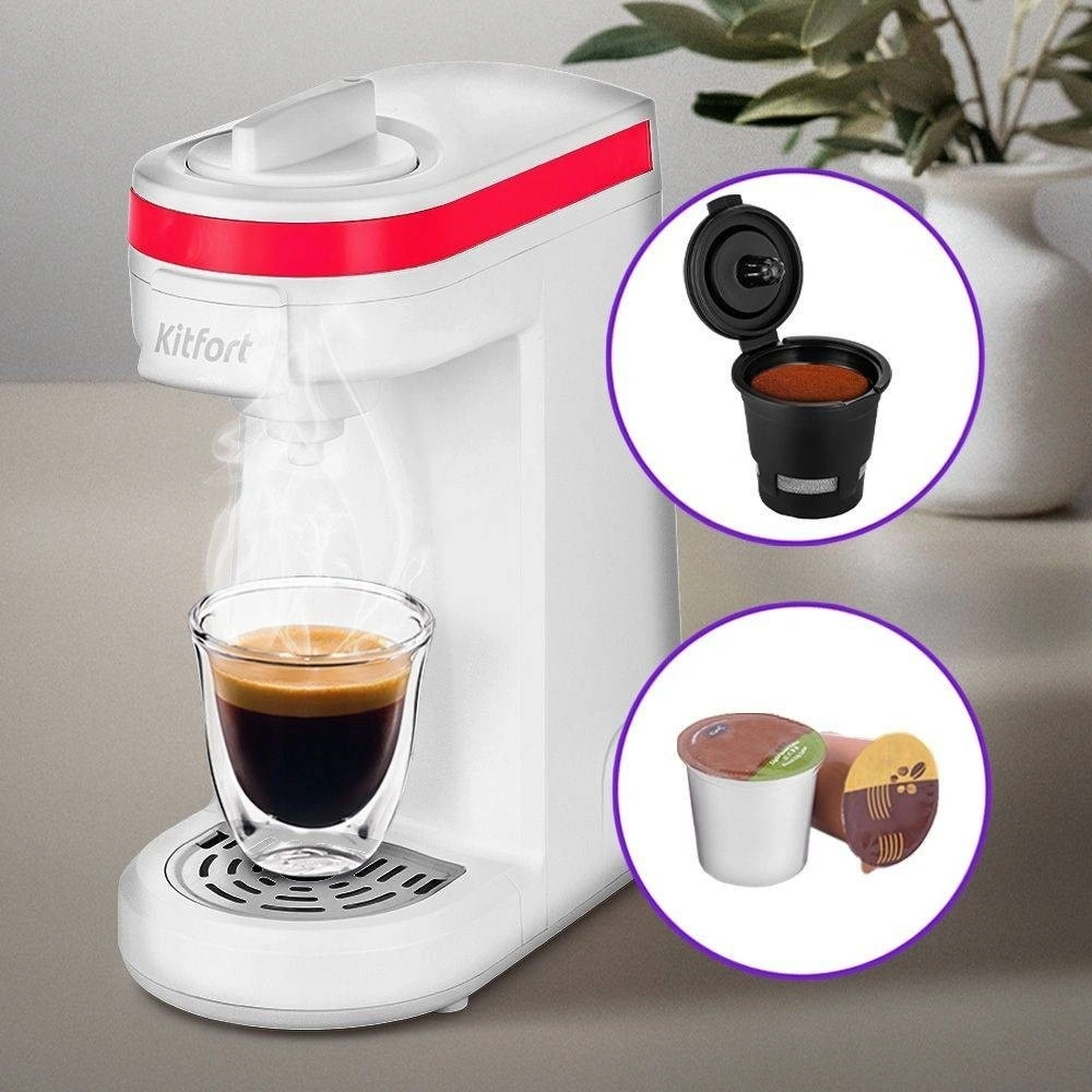 Капсульная кофемашина Kitfort КТ-7122-1 бело-малиновый
