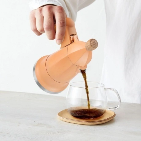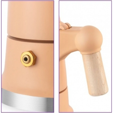Гейзерная кофеварка КТ-7152 – простой и эффективный способ приготовления кофе в домашних условиях. Напиток «из гейзера» получается плотным, что-то среднее между фильтровым методом и эспрессо. Гейзерная кофеварка компактна и легка в использовании. В резервуар наливают воду и устанавливают воронку с фильтром, куда добавляют молотый кофе. Сверху накручивается резервуар для кофе. Далее кофеварку помещают на плиту. Вода нагревается, пар вытесняет горячую воду через фильтр, и получается готовый кофе. С гейзерной кофеваркой нет необходимости следить за подъёмом пенки, а готовый кофе не содержит гущи. KT-7152 рассчитана на приготовление до 40 мл кофе. Воронка фильтра вмещает 7 г кофе, а резервуар для воды - 70 мл. Корпус выполнен из алюминия. Гейзерную кофеварку КТ-7152 можно ставить на любую варочную поверхность, кроме индукционной плиты. Рекомендуется включать плиту на среднюю мощность при заваривании кофе. Можно легко разобрать на составные части: резервуар для кофе откручивается от резервуара для воды, а для удаления кофейных осадков достаточно разобрать воронку с фильтром. Все детали можно легко очистить, используя тёплую проточную воду и мягкую губку. Паровой клапан предусмотрен для стравливания избыточного давления в резервуаре для воды. Форма носика позволяет удобно наливать кофе. Ничего не перельётся через крышку. Стильная деревянная ручка удобно лежит в руке и не перегревается. Кофеварка выполнена в красивых нежных цветах с деревянными вставками и поэтому сможет радовать вас не только вкусным и ароматным кофе, но и создаст приятную атмосферу на кухне.