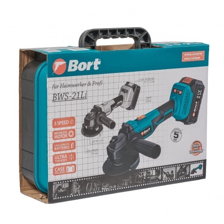 Bort BWS-21LI оснащена мощным 4 амперным аккумулятором, что позволяет работать без необходимости подключения к сети электропитания. Это делает УШМ портативной и удобной в использовании в любом месте, где нет доступа к розетке, так как в комплекте идет дополнительная батарея и быстрое зарядное устройство с током зарядки 4 ампера. Этот инструмент оснащен современным бесщеточным двигателем, который обеспечивает высокую эффективность работы и продолжительный срок службы. Благодаря отсутствию щеток двигатель обладает низкими вибрациями и шумом, что создает комфортные условия работы для оператора, а также долгий срок службы и повышенную мощность при работе. Bort BWS-21LI может использоваться для различных задач, таких как резка, шлифовка, полировка, фрезерование и многое другое. Она подходит для работы с различными материалами, включая дерево, металл, пластик и камень. Ушм имеет плавный пуск и 3 скорости работы от 5000 до 8500 оборотов. Этот инструмент будет полезен как для профессиональных строителей, ремонтников и мастеров по дереву, так и для любителей, занимающихся DIY-проектами в домашних условиях. Он идеально подойдет для строительства, отделки, ремонта и многих других видов работ. Благодаря своей портативности и простоте использования, аккумуляторная бесщеточная ушм Bort BWS-21LI станет незаменимым помощником как на стройплощадке, так и в домашней мастерской. Она позволит вам выполнять задачи с легкостью и точностью, обеспечивая высокий уровень качества и профессионализма.
