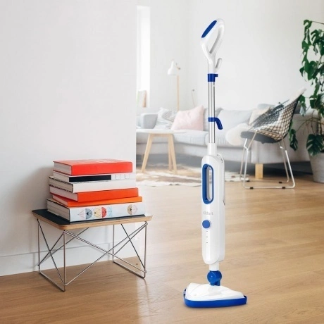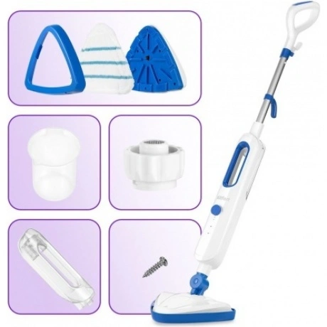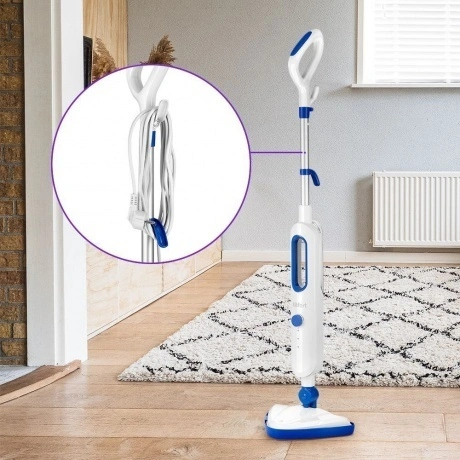Паровая швабра КТ-1048 — универсальное устройство, которое поможет избавиться от пыли и грязи с помощью мощной струи пара, а также продезинфицирует поверхность. Высокая температура пара способствует процессу очистки любых загрязнений. Плавная регулировка уровня подачи пара позволяет настраивать интенсивность работы устройства. Это очень удобно при очистке разных типов поверхностей с разным уровнем загрязнения. Чем сильнее загрязнение, тем больше пара потребуется. Швабра КТ-1048 оснащена специальной конструкцией, благодаря которой вы сможете легко вымыть пол под мебелью. Принцип действия парогенератора основан на воздействии горячего пара на загрязнения. Пар проникает внутрь загрязнения, размягчая и растворяя его. Напольная щётка закреплена на специальном шаровом шарнире с наклоном в двух плоскостях, что делает швабру КТ-1048 очень маневренной и значительно облегчает уборку. Насадка для пола надёжно фиксируется шурупом, который идёт в комплекте. Во время работы парогенератора вода из резервуара проходит через специальный фильтр. Швабра оснащена резервуаром для воды ёмкостью 360 мл, что позволит убрать большую площадь сразу. Конструкция удобно разбирается, чтобы наполнить и вымыть резервуар. Стакан для наливания воды служит для удобного и безопасного наливания воды в резервуар. В комплекте идут рамка для ковра, 2 тряпки для пола, удлинительная трубка, ручка, шуруп для фиксации насадки и резервуар для воды с крышкой. Помимо гладких поверхностей, паровая швабра также убирает ковровые покрытия с недлинным ворсом. Комплектацией швабры предусмотрена рамка, она крепится на щётку и тряпку. Рамка облегчает скольжение щётки по ковру и предотвращает задирание краёв тряпки. Паровая швабра КТ-1048 обладает функцией вертикальной парковки, так что вам необязательно ставить её в шкаф. На удлинительной ручке предусмотрены держатели для шнура для ещё более компактного хранения. Длина шнура – 4.9 метра.