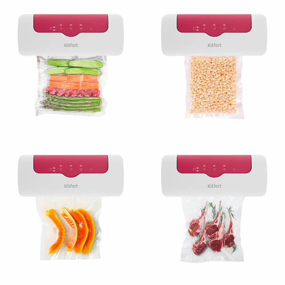 Описание товара Вакуумный упаковщик Kitfort КТ-1536-1 бело-малиновый