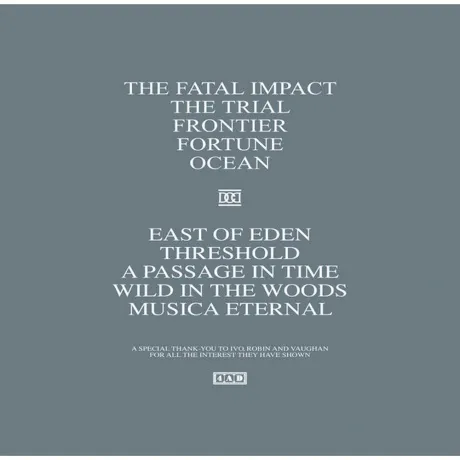 Лицензионное издание, выпущенное на виниле. В альбом вошли следующие композиции: The Fatal Impact, The Trial, Frontier, Fortune, Ocean, East of Eden, Threshold, A Passage in Time, Wild in the Woods, Musica Eternal