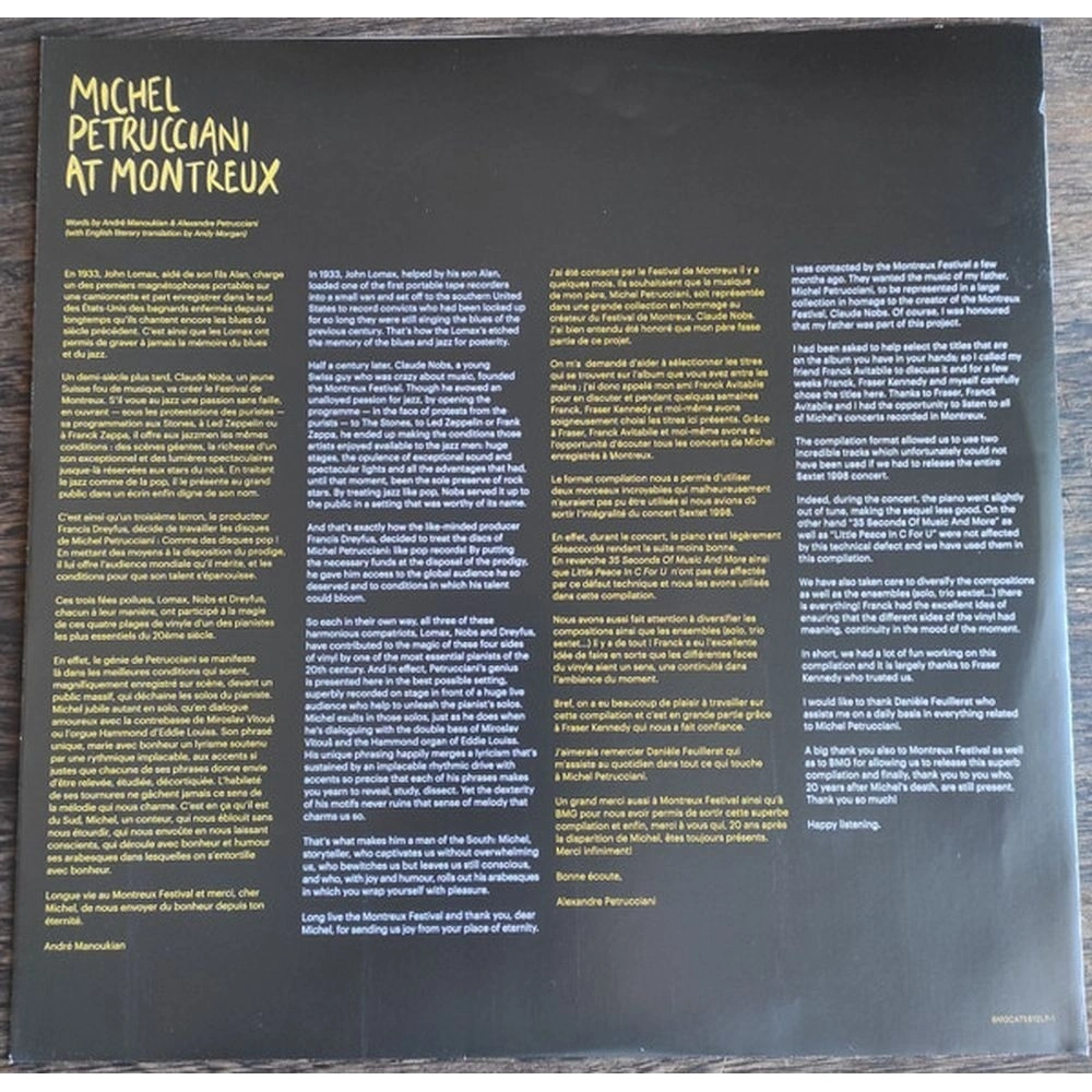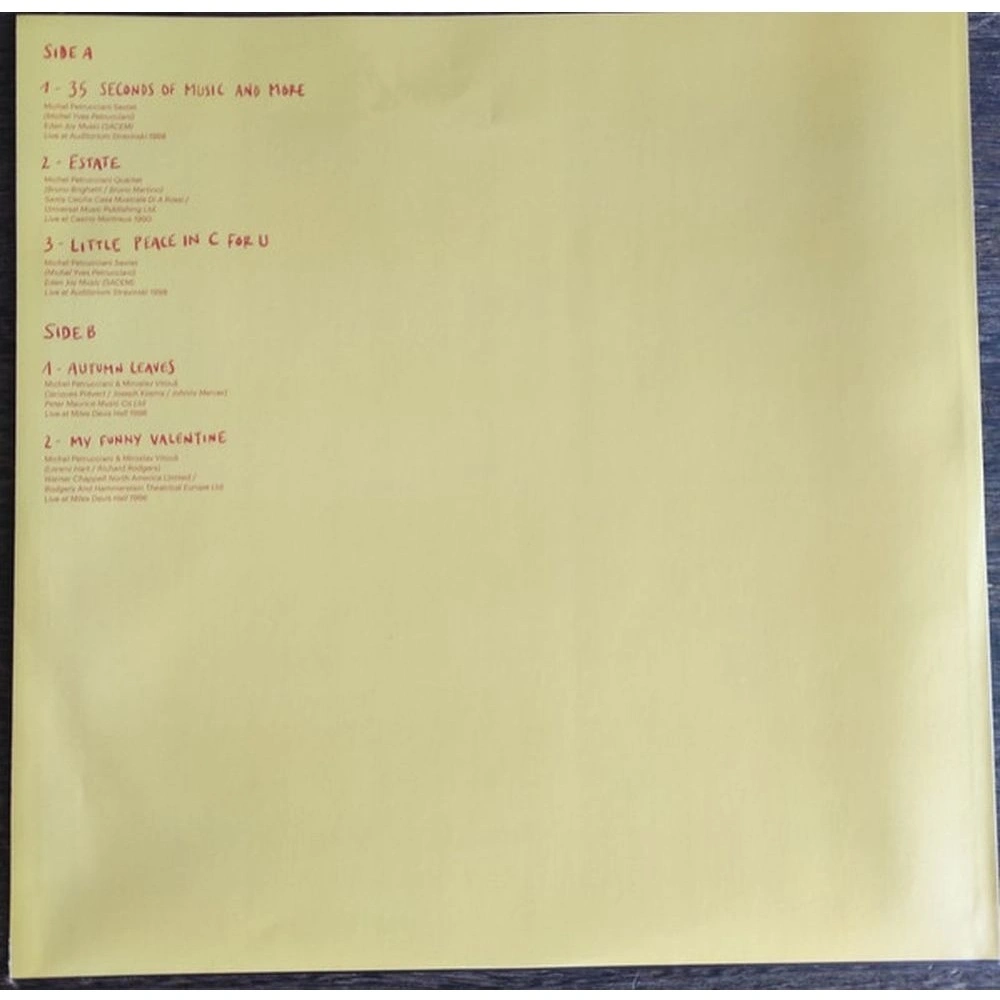 Лицензионное издание, выпущенное на виниле. В альбом вошли следующие композиции: 35 Seconds of Music and More - Michel Petrucciani Sextet (Live at Auditorium Stravinski 1998), Estate - Michel Petrucciani Quartet (Live at Casino Montreux 1990), Little Peace in C for U - Michel Petrucciani Sextet (Live at Auditorium Stravinski 1998), Autumn Leaves - Michel Petrucciani & Miroslav Vitous (Live at Miles Davis Hall 1996), My Funny Valentine - Michel Petrucciani & Miroslav Vitous (Live at Miles Davis Hall 1996), Miles Davis Licks - Michel Petrucciani Quartet (Live at Casino Montreux 1990), Summertime - Michael Mpetrucciani(Live at New Q's 1993), Take the 'A' Train - Michael Petrucciani (Live at New Q's 1993), So What - Michel Petrucciani & Miroslav Vitous (Live at Miles Davis Hall 1996), You Are My Waltz - Michael Petrucciani (Live at New Q's 1993), Rachid - Michel Petrucciani Quartet (Live at Casino Montreux 1990)