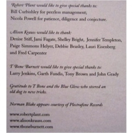 Raising Sand — студийный альбом Роберта Планта и Элисон Краусс, выпущен 23 октября 2007 года. Альбом является победителем в номинации Альбом года на 51-й церемонии Грэмми (2009). Альбом представляет собой 13 кавер-версий. В альбом вошли новые версии одной из песен Тома Уэйтса, а также композиции "Please Read The Letter" из альбома Джимми Пейджа и Роберта Планта "Walking Into Clarksdale".