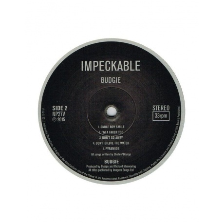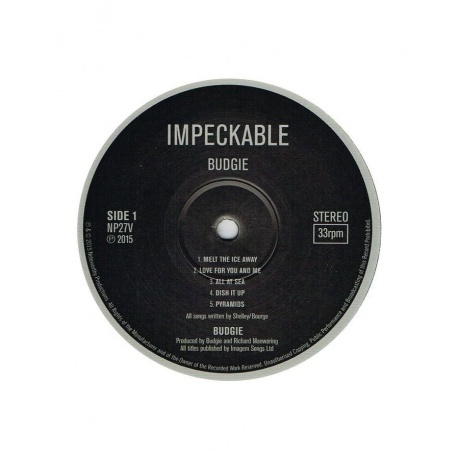 "Impeckable" - седьмой студийный альбом валлийской рок-группы Budgie, первоначально вышедший в феврале 1978 года. Британское переиздание 2015 года на 180-граммовом аудиофильском виниле. Budgie - валлийская рок-группа, основанная в 1967 году. Это одна из первых групп, начавших играть в стиле хэви-метал, и потому коллектив оказал огромное влияние на последующее развитие тяжелого рока.