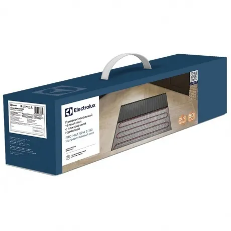 Серия Pro Mat произведена на основе тончайшего двужильного кабеля, вплетенного в особо прочную текстильную сетку. Это наделяет его повышенной устойчивостью к внешним воздействиям, предупреждает смятие матов во время хранения и перевозки – они хорошо ложатся и образуют идеально ровную поверхность. Преимущества: Поставляется в упаковках для площадей различного размера – от 0,5 м2 укладки до 12м2. Трехслойная изоляция жил нагревателя. Высокий класс пылевлагозащищенности IPX7. Обе жилы являются греющими. Рассчитаны на одностороннее подключение с напряжением в 220 В и 50 Гц. Соединительный кабель по длине составляет 2 метра. Удельная мощность серии 150 Вт на квадратный метр площади. Сохранение свойств при температуре не ниже 500°. Толщина изделия 3,5 мм. Шаг укладки рассчитывается, исходя из 7,4 см. Пробивное напряжение 4000 В. Комплект поставки: Инструкция с гарантийным талоном, Теплый пол Electrolux Pro Mat 2-150 , Гофрированная труба 2 м для установки датчика температуры пола, Заглушка пластиковая, Обжимные гильзы для подключения к терморегулятору.