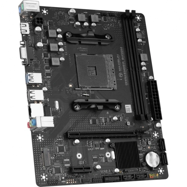 Материнская плата MS-Challenger B450M AM4 поддерживает процессоры AMD Socket AM4. Она имеет два разъема DDR4 для оперативной памяти, один разъем PCI-Express 16x и один разъем PCI-Express 1x. Также есть один разъем M.2 для SSD-накопителей. На передней панели расположены два порта USB 3.0 и два порта USB 2.0. На задней панели два порта USB 2.0 и два порта USB 3.0. Есть также четыре порта SATA III и один гигабитный сетевой разъем. Материнская плата оснащена видеовыходами HDMI и VGA, а форм-фактор mATX. Поставляется с поддержкой Realtek RTL.