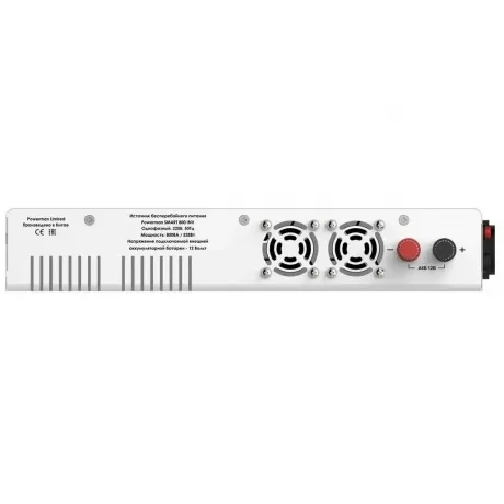ИБП Powerman Smart 1000 INV – универсальное устройство. Он применяется как для стабилизации напряжения, так и для обеспечения оборудования резервным питанием. Устройство лишено встроенного аккумулятора, но присутствуют клеммы для его подключения. ИБП Powerman Smart 1000 INV присоединяется к розетке. Для этого используется шнур с вилкой из набора поставки. Для подключения техники применяются две евророзетки, поддерживающие резервное питание. Входное напряжение – от 140 до 275 В. После стабилизации, устройство выдает 220 В с отклонениями в пределах 8%. Переключение на аккумулятор, в случае прекращения электроснабжения, занимает 4 мс. Важно учитывать максимальную выдаваемую мощность – 600 Вт. Этого достаточно для обеспечения энергией различного оснащения. Для отображения параметров при работе используется жидкокристаллический дисплей. Он дает возможность отслеживать функционирование устройства. В оборудование установлена система охлаждения. Она предотвращает перегрев внутренних компонентов, хорошо справляется с отводом тепловой энергии. Применяться устройство может как дома, так и в офисах.