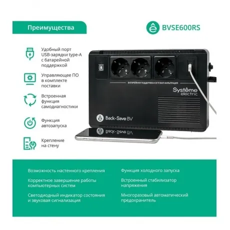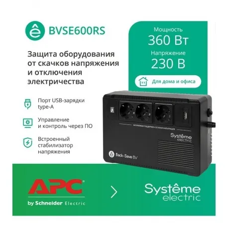 Описание товара ИБП Systeme Electric Back-Save BV 600 ВА (BVSE600RS)